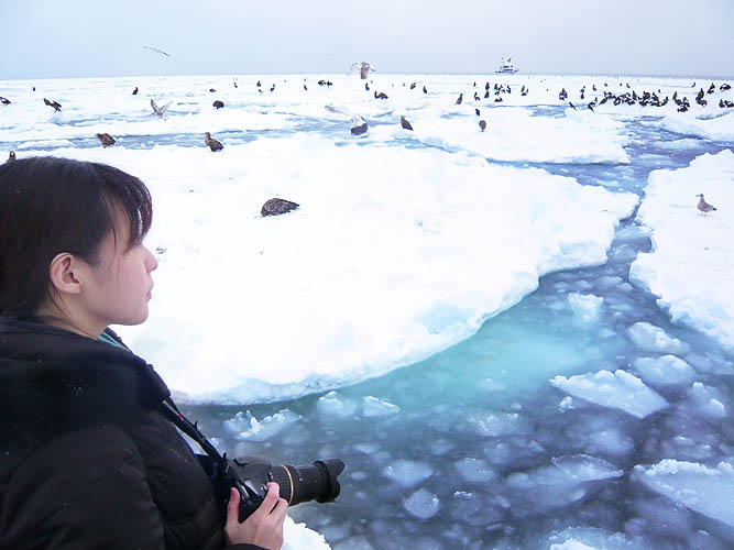 早朝4時に起きて、船で極寒の羅臼の海へ。